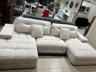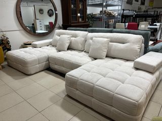 Sofá modular Chesslong en color beige, ideal para tu salón. Su diseño permite múltiples configuraciones para adaptarse a tu espacio. - Tapicería de tela. - Cojines mullidos para mayor comodidad. - su estructura es toda de espuma de alta densidad -contiene tres módulos que los puedes poner de varias posiciones Las medidas de los 3 módulos son : 165x110 cm 165x110 cm 110x110 cm Incluye 2 cojines - coste del envio contrareembolso - 25€