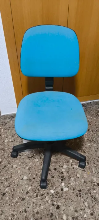 Silla de ordenador con asiento y respaldo en color azul. - Base de cinco patas con ruedas. - Altura regulable.