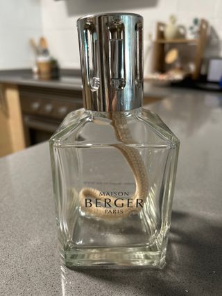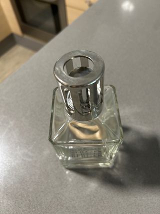 Lámpara de ambientador Maison Berger Paris. - Diseño de cristal transparente. - Incluye mecha. - Modelo con tapa metálica plateada.