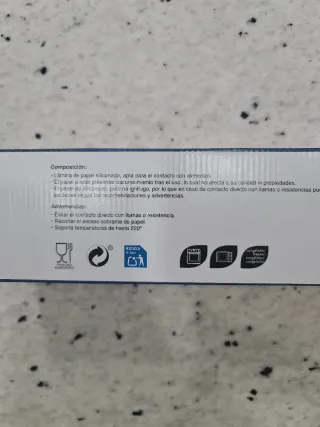 Rollo de papel para hornear de uso doméstico y para hostelería. Para uso en horno, microondas, freidora de aire... - Ancho de 38mm. - 60 metros de largo - La propia caja es un portarrollos con sierra integrada