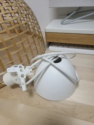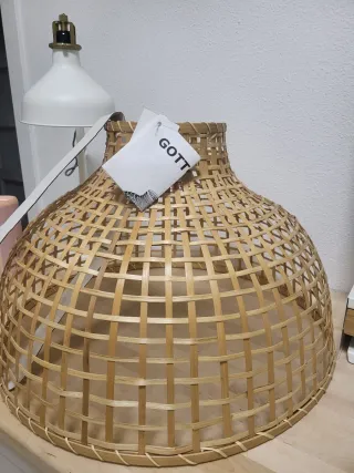 Pantalla de lámpara grande, estilo natural y artesanal. - Material principal: bambú tejido. - Diseño abierto y espacioso. - Tonos cálidos y terrosos. - regalo casquillo para lampara tambien nuevo a estrenar de ikea