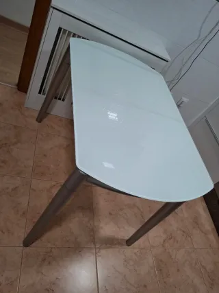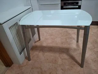 Mesa cristal y aluminio de cocina.
