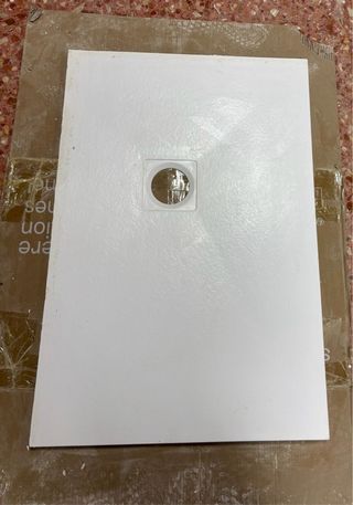 Plato de ducha de resina en color blanco. - Medidas: 90x61cm. - Diseño moderno. - Incluye sifón y rejilla. - Plato retirado sin uso. ** Tiene una pequeña marca.