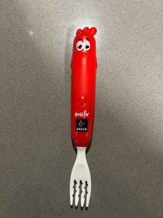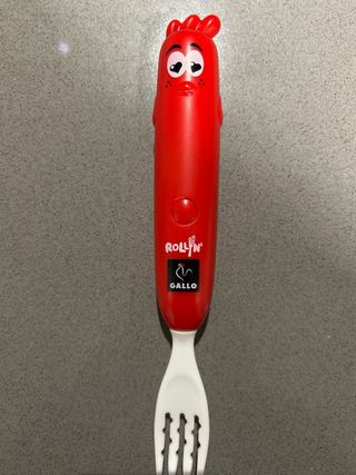 Este divertido tenedor de la marca Gallo es perfecto para disfrutar de tus espaguetis. Su diseño llamativo lo hace ideal para los más pequeños. - Mango con forma de personaje. - Tenedor de plástico blanco. -Incluyo las pilas. -Nuevo sin uso.
