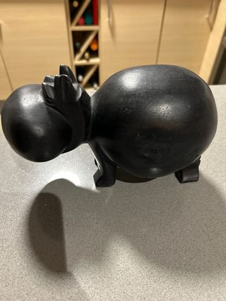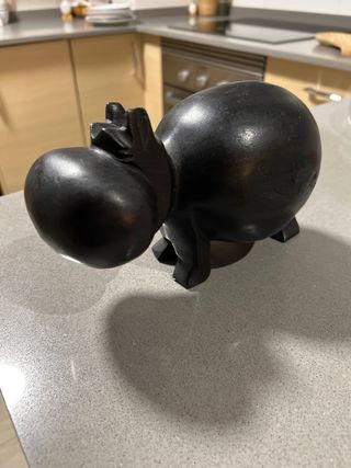 Figura decorativa de un hipopótamo tallada en madera. - Material: Madera. - Color: Oscuro. -Comprada en un mercado medieval - Tallada a mano,pieza única.