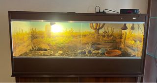 Terrario espacioso, ideal para reptiles y tortugas. Cuenta con un diseño de paisaje desértico. - Puertas corredizas de cristal. - Incluye instalación electrica. - No incluye bombillas ni termoestato.