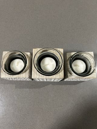 Lote de 3 portavelas de madera y cristal
