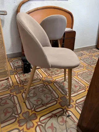 Sillas de comedor madera y tela beige