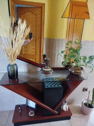 ✅ Ref. C10042 Conjunto a juego compuesto por un recibidor y un espejo de estilo clásico. Se trata de una elegante combinación con un espejo amplio y alto y un recibidor con gran espacio de almacenamiento con un cajón amplio y dos puertas con compartimento interior. Es ideal para dar un toque distintivo a la entrada de nuestra casa. Como podemos observar en las fotografías se encuentra en buenas condiciones. 📐 Medidas Recibidor (ancho x fondo x alto): 123x30x70cm. Espejo (ancho x alto): 147x212cm. Financia tus compras de forma inmediata. Visita nuestra web Cardiffstore o nuestra tienda en Catral (C/Alfafar); Llámanos
