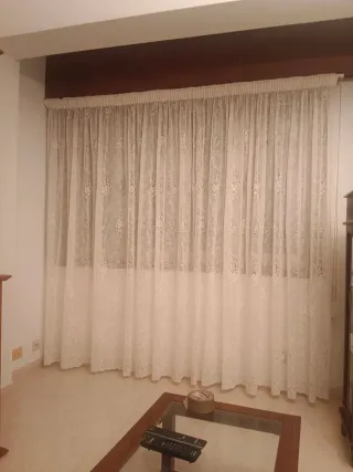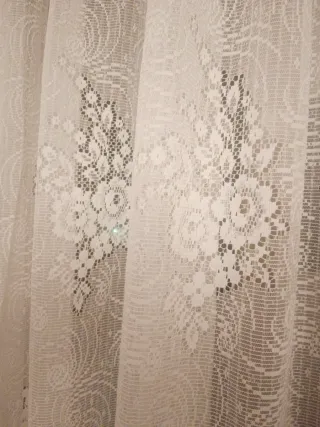 Elegantes cortinas de encaje con un diseño floral y visillo. - Patrón floral detallado. - Textura delicada. - Hay 2 cortinas con las mismas medidas. 25,00 cada una.