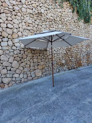 Sombrilla grande jardín madera beige