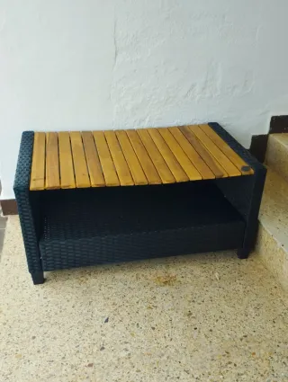 Elegante mesa de centro con un diseño moderno que combina materiales actuales. Muy práctica y combinable tanto en salón, terraza, balcón, piscina, jardín, etc... ✅ RATÁN SINTÉTICO NEGRO ✅ PARTE SUPERIOR MADERA ✅ ÚTIL ESTANTE INFERIOR ✅ APTA INTERIOR/EXTERIOR ✅ ESTADO GENERAL BUENO ✅ MEDIDAS Largo: 90 cm. Ancho: 55 cm. Alto: 44 cm. ✅ IMÁGENES FIELES A PRODUCTO Y DESCRIPCIÓN. Jardin, piscina, camping, vacaciones, apartamento, mobiliario auxiluar, terraza, balcón, verbena, navidad, tumbona, hamaca, silla, evento, barbacoa, chil out, carpa, cenador, toldo, camper, caravana, roulot, autocaravana, barco, nauti