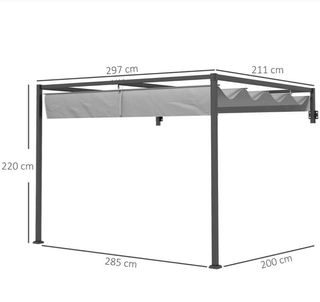 - El toldo retráctil se puede ajustar fácilmente según tus necesidades - Toldo de poliéster recubierto en PA para proteger de los rayos UV y evitar la decoloración debido a la incidencia del sol - Cenador de jardín con estructura de acero con recubrimiento en polvo resistente e ideal para uso prolongado - Material: acero y tejido de poliéster - Medidas totales: 297x211x220 cm (LxANxAL) - Distancia entre columnas: 285x200 cm (LxAN) - Tamaño de la columna: 6x6 cm (LxAN) - Nivel de viento: 6-7 - Referencia: 84C-470V00CG