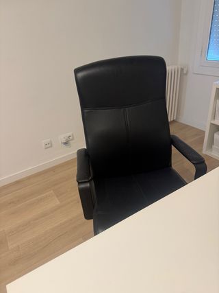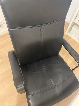 Silla de oficina con un diseño moderno y elegante. - Respaldo alto para mayor comodidad. - Reposabrazos acolchados. - Base giratoria.