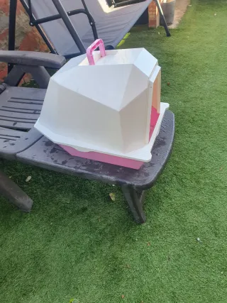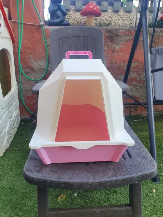 Arenero cerrado para gatos, se vende por no usar-se. - Tapa superior con rejilla. - Base con relieve para facilitar la limpieza. - Material resistente y fácil de limpiar.