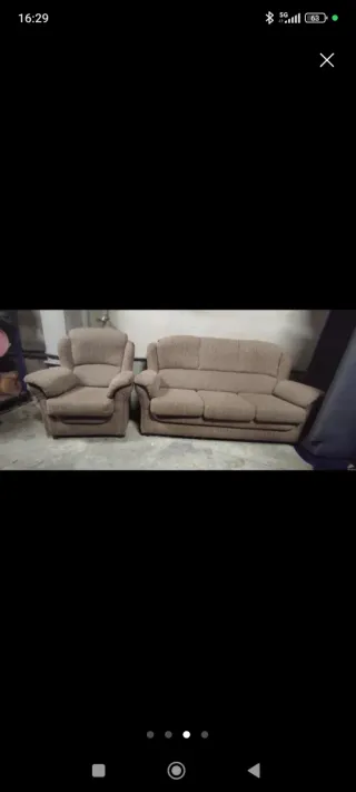 Sofá en buen estado, con algunos pocos rasguños de gato (solo en un lado). Butaca tambien en buen estado. Se pueden comprar por separado: - Sofá 3 plazas 80€ - Sofá 3 plazas + Butaca: 90€ Medidas: 1'75m largo -78cm alto -1'00m ancho.