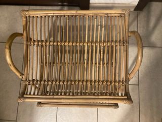 Práctico revistero de mimbre con dos niveles para organizar tus revistas y publicaciones. - Diseño de dos estantes. - Estructura de bambú y ratán.