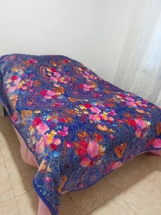 Manta suave y acogedora con un diseño vibrante. - Estampado floral multicolor sobre fondo azul. - Tacto agradable y cálido.220×240