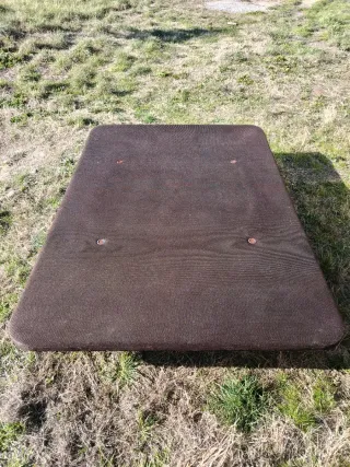Somier de matrimonio en color marrón. - Medidas: 135x190 cm. - Altura total: 30 cm. Desperfectos en algun pequeño sitio mostrados en la foto.