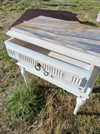 - Encimera de mármol. - Cuerpo de madera -Dos cajones