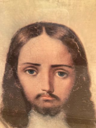 Este es un cuadro antiguo con la imagen de Jesucristo. - Marco de madera. - Imagen impresa en papel.