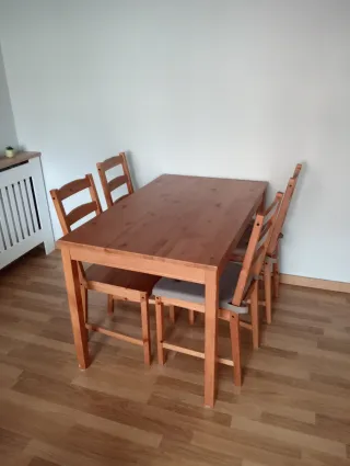 Conjunto de mesa de comedor con cuatro sillas. - Diseño moderno y funcional. - Ideal para espacios familiares. - No se envia. Se tiene que venir a recoger. Primer piso con ascensor. Aparcamiento enfrente del edificio.