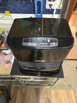 Estufa de parafina Ruby en color negro. - Diseño moderno y elegante. - Panel de control superior.