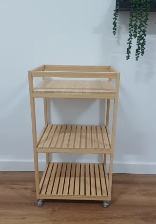 Carrito auxiliar de bambú, ruedas transparentes de silicona. - Bambú y madera. - Color beige y marrón. - Dispone de ruedas de silicona para facilitar su movilidad sin rallar la superficie.