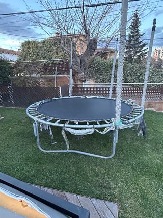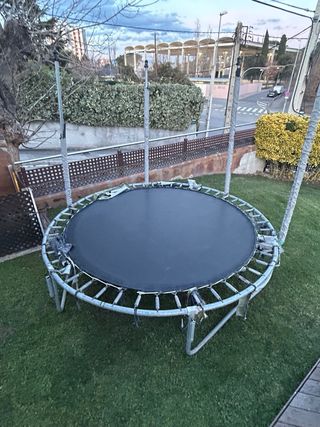 Cama elástica de 2.50 metros de diámetro. Ideal para disfrutar en el jardín. - Estructura metálica. - Superficie de salto negra. - Postes de seguridad acolchados.