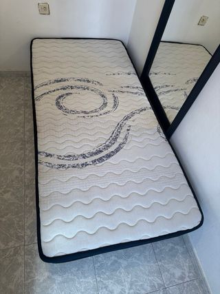 Se vende somier de láminas con colchón. 90 cm de ancho por 190 cm de largo - Estructura de madera. - Colchón de tela. Nunca se utilizo