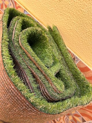 Se vende césped artificial en buen estado, ideal para pistas deportivas o jardines. - Materiales de alta calidad para mayor durabilidad. - Textura que simula el césped natural.