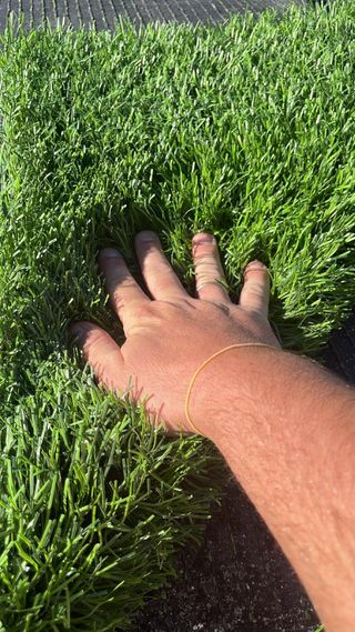 Se vende césped artificial de Madrid Césped, modelo BRU40, con 20m2. Lo compre por 900€ (sin IVA, 1089€ IVA incluido) y lo vendo por 500€ porque me mudo. El precio es negociable (con criterio por favor) - Altura de fibra: 40 mm. - Densidad de fibras: 26.250 puntadas/m2. - Calidad Dtex: 9.750 micras. - Resistente a rayos UVA - Antialérgico e ignífugo.