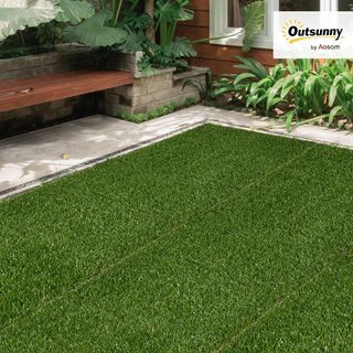 Baldosas de Jardín con Césped Sintético 30X30Cm 10 Piezas, Césped Artificial Realista, Verde