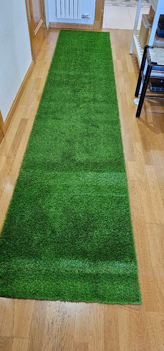 Césped artificial 73*173 cm aprox. Hierba larga y suave, sin usar, me sobró de un trozo grande que compré en leroy merlín de 160€. Precio no negociable. Sólo venta en persona