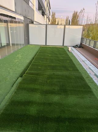 Rollo de césped artificial, completamente sin usar y sin abrir. Comprado en El Corte Inglés. Tengo 1 rollo de cada de 1x5m, 2x5m, 2x10m. Precio corte inglés nuevo: 1x5m: 97,5€ lo dejo a 80€ 2x5m: 195€ lo dejo a 160€ 2x10m: 390€ lo dejo a 320€