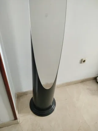 Elegante espejo de pie con un diseño moderno y estilizado. Su forma ovalada y la combinación de colores lo hacen destacar en cualquier espacio. - Base redonda y estable. - Marco superior curvo. 1,65 cm