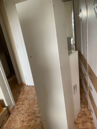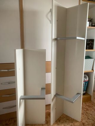 Armario auxiliar de madera de pino, ideal para organizar espacios. Necesita algún arreglo, en concreto, sustituir la barra de colgar y fijar dos tablillas. El resto de elementos se encuentran en perfecto estado. Dimensiones: - alto 175 cm, - largo 120 cm, - fondo 50 cm. Lo tengo desmontado, pero con todos sus tornillos e instrucciones de montaje.