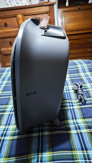 Purificador de aire AEG con un diseño moderno y elegante. - Acabado en tela. - Asa de transporte integrada.
