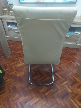 Conjunto de 3 sillas con un diseño moderno y elegante. - Tapicería en piel sintética de color beige. - Estructura de metal resistente. Urgen venta