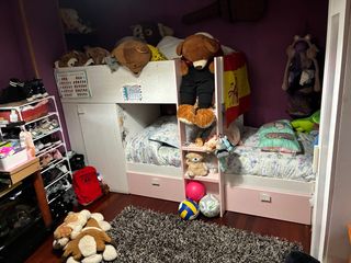 Litera en buen estado, ideal para habitaciones infantiles o juveniles. Combina colores blanco y rosa para un ambiente alegre. - Estructura principal de madera. -tiene armario de almacenamiento y dos cajoneras se incluye colchón negociable
