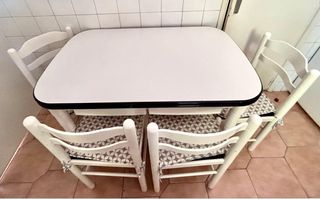 Mesa de cocina y 4 sillas blancas