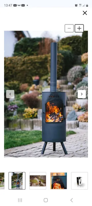 Chimenea de leña de acero negro con puerta de cristal resistente al calor. Diseño moderno y minimalista, perfecta para interior o zona exterior cubierta. Permite ver el fuego gracias al frontal de cristal, creando un ambiente muy acogedor. Incluye tubo de salida de humos y base metálica. Funciona perfectamente y calienta muy bien espacios amplios como salones, porches o casas de campo. Estado: usada, con marcas normales del uso en el interior, pero en buen estado general. Ideal para quien quiera una calefacción eficiente y decorativa.