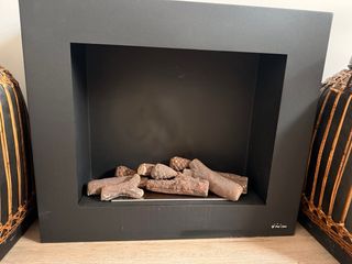 Chimenea bioetanol, empotrable en pared o mueble. Apenas usada. Incluye piedras blancas de decoracion