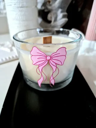 ✨ Características Principales: - La Vela de vaso decorativa y aromática, es un producto que presenta un diseño de lazo en color rosa. - Ideal para quienes buscan un accesorio con un toque de color rosa para su rincón favorito - 100% soja natural. - Mecha de madera para sentir el sonido como una chimenea ✨ Uso y Aplicación: - Decoración del hogar al estilo bridgerton - Si se desea añadir un elemento de color rosa y olor relajante a colonia de bebé, perfecto para sentirse como en casa. ✨ Detalles Adicionales: - Cera de calidad sin tóxicos, 100% natural - Durabilidad más de 10h en condiciones normales. El plato son 2€ más
