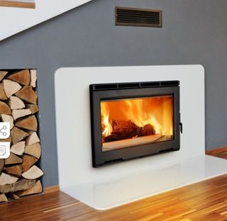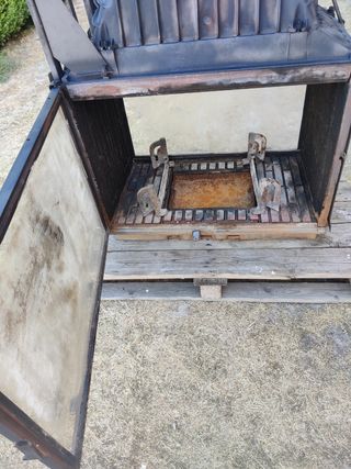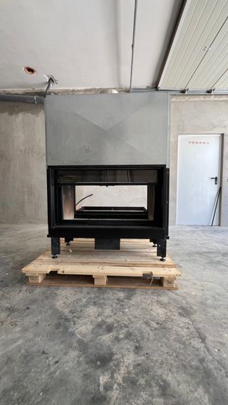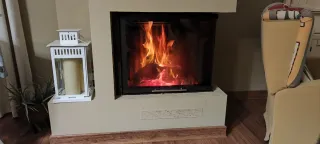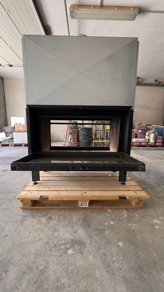 Se vende chimenea con cristal doble cara nueva (Solo se ha probado una vez) de alta calidad y rendimiento. Una puerta se abre en forma de guillotina y la otra de forma lateral.