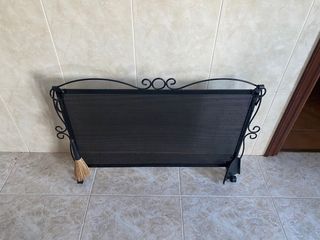 Preciosa pantalla para chimenea de estilo clásico. Panel antichispas. Con cabeza de venado en la parte superior. Tres paneles plegables.