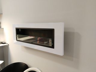 Chimenea eléctrica decorativa de la marca Cecotec, con un diseño moderno y elegante. - Tamaño de 26 pulgadas. - Acabado en blanco brillante. - Marco de cristal y plástico. Sin usar, se compró hace un mes para regalo, se montó pero no cabe y se desmontó