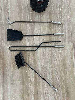 Juego de chimenea de bronce vintage completo compuesto por Soporte 52.5 cm Pinzas 42.5 cm Pincho 44 cm Pala 44.5 cm