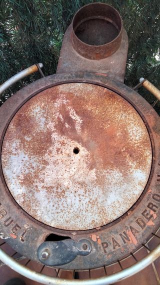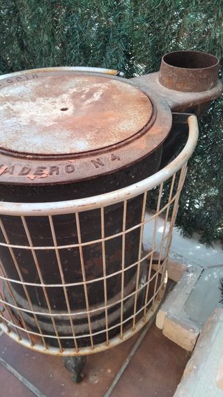 Pieza de colección, una chimenea antigua con un diseño robusto. - Fabricada en metal resistente. - Detalles de óxido que aportan carácter.
