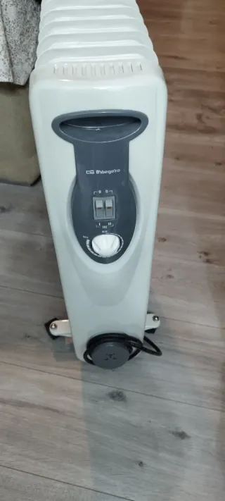 Calentador eléctrico de aceite con 2500W de potencia. Ideal para mantener una temperatura agradable en cualquier estancia. - Tres niveles de calor seleccionables. - Termostato regulable. - Ruedas para facilitar su movilidad. No se ha usado nunca lo saqué de la caja para probarlo pero tengo chimenea asique no sé utiliza .